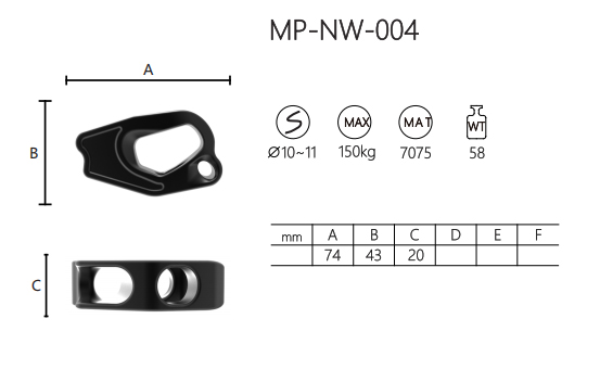 The MP-NW-004 is a 7075 aluminum - alloy - made rope - handling device designed for ropes with diameters of 10 - 11mm. It has a maximum load capacity of 150kg, ensuring reliable performance in various applications.