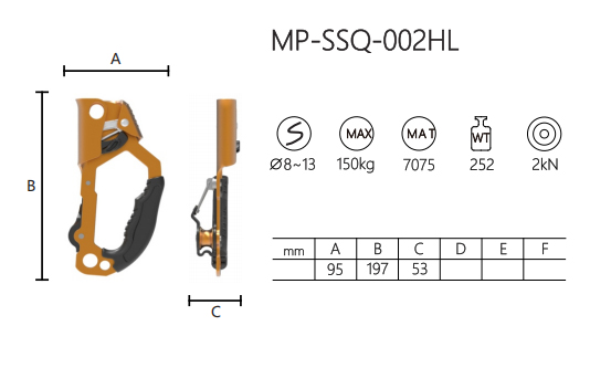 The MP-SSQ-002HL Aluminum Chest Ascender is a key piece of gear for climbing and rope access tasks. Designed for reliable performance, it works well with ropes of 8 –13 millimeters in diameter.