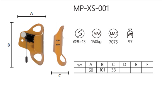 This device supports a maximum load of up to 150 kilograms, ensuring the safety and stability of the user during climbs. The MP-XS-001 is engineered to provide smooth rope movement while maintaining a secure grip when required. Its design allows for effortless integration into various climbing setups, offering both versatility and ease of use. To maintain optimal performance and safety, regular inspection and proper usage are essential.
