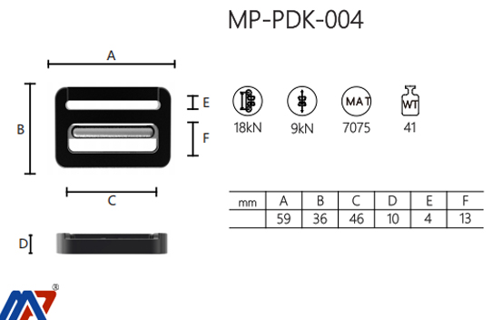 The MP-PDK-004 triple-bar adjustable buckle is a robust connector crafted from 7075 aluminum alloy with grade 41 surface treatment. It ensures durability and resistance to harsh conditions.